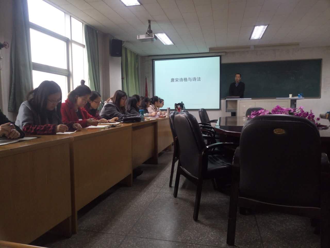 下午4:00点,best365官网副教授、硕士生导师郭庆财老师在12号楼5层会议室作了题为“唐宋诗格与诗法”的学术报告。中国古代文学专业的研究生到场听取了此次报告。