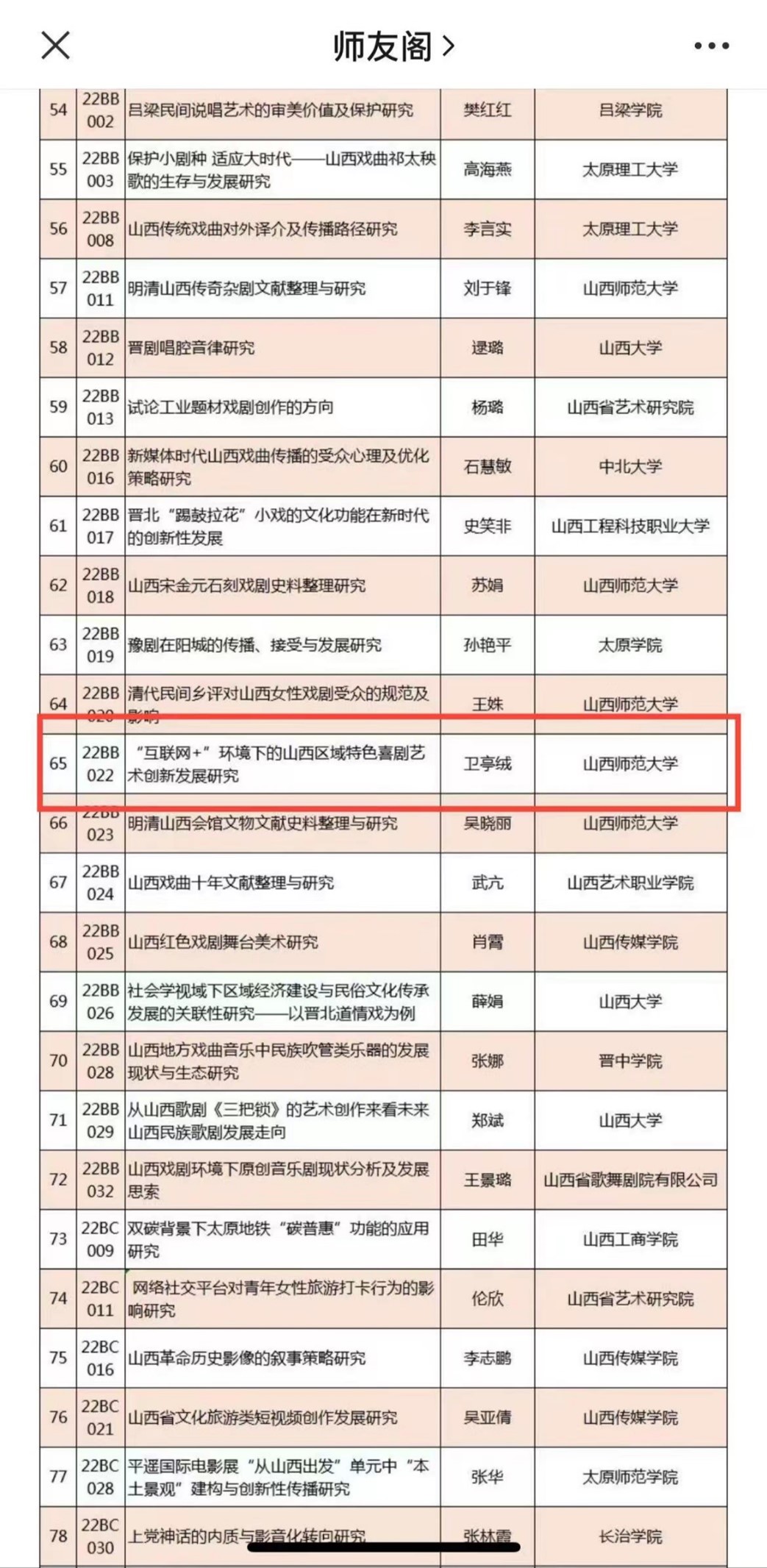 近日,山西省艺术科学规划领导小组专家评选出了2022年度山西省艺术科学规划立项课题, 公司共计获批9项,best365官网卫亭绒《“互联网+”环境下的山西区域特色喜剧艺术创新发展研究》成功立项。