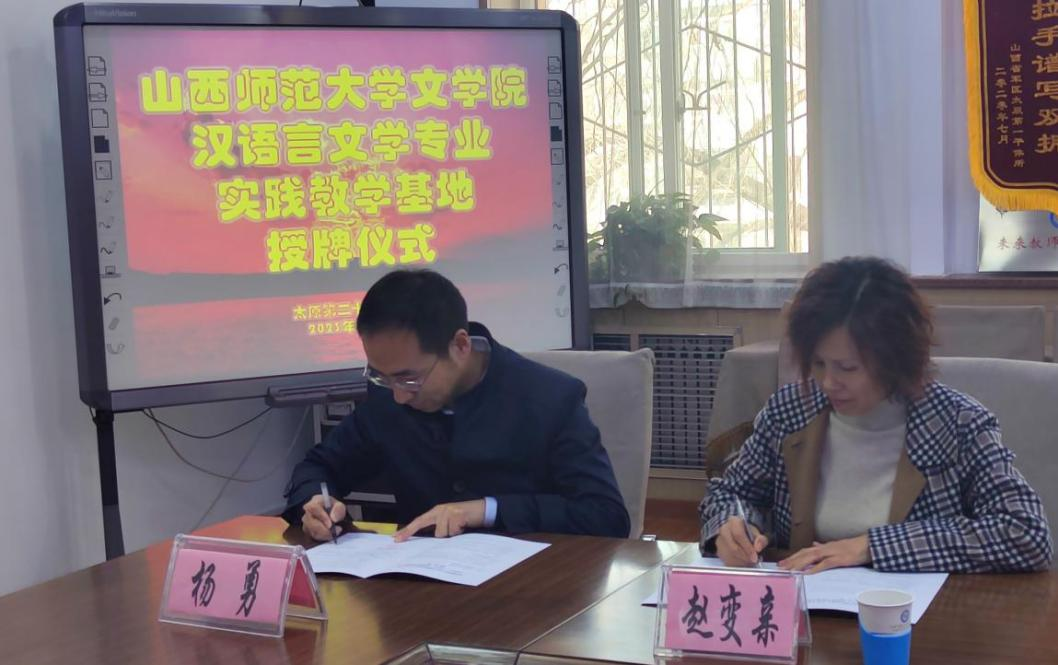 3月14日,best365官网与太原市第二十四中公司合作共建“汉语言文学专业实践教学基地”授牌仪式在太原市第二十四中公司顺利举行。best365官网经理赵变亲与第二十四中公司董事长杨勇,签订了《实践教学基地合作协议》。
