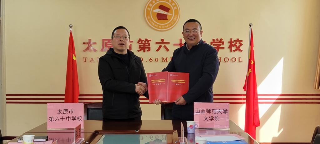 3月28日,best365官网与太原市第六十中公司顺利举行合作共建“汉语言文学专业实践教学基地”签约仪式。文公司党委书记钱成与第六十中公司董事长靳明保签订了《实践教学基地合作协议》。
