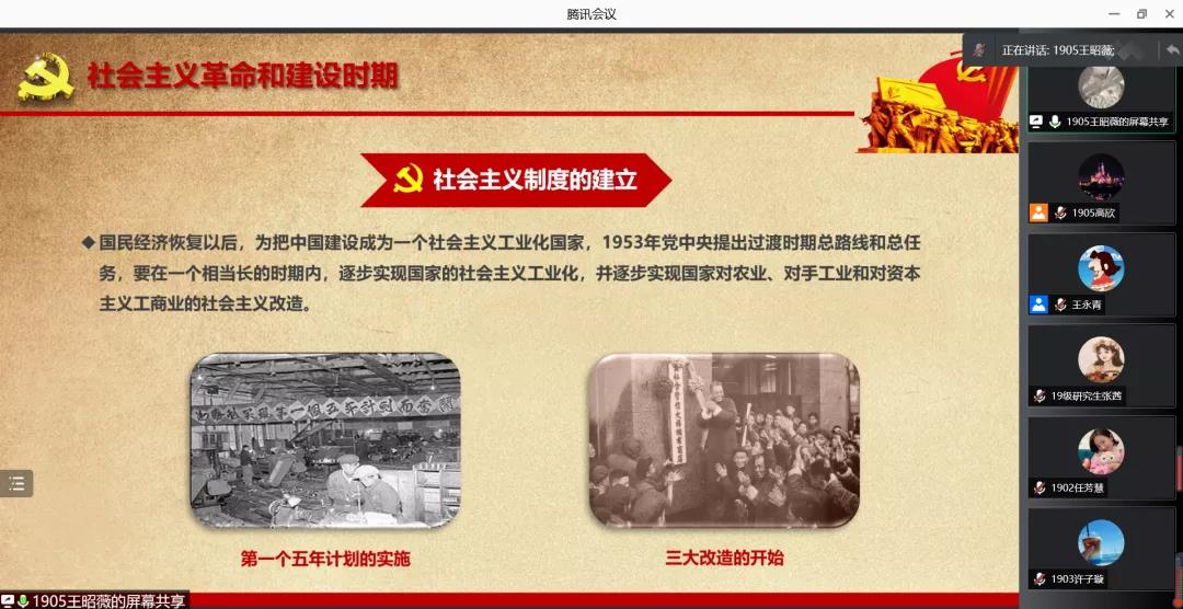 王昭薇同志概括讲述了《中国共产党组织建设一百年》第二编“社会主义革命和建设时期”的内容。她讲述了社会主义制度的建立、社会主义建设在探索中曲折发展的历史,带领全体同志回顾了我国第一颗原子弹爆炸等建设成果,学习了第一届全国人民代表大会、中国共产党第九次全国代表大会和中国共产党第十次全国代表大会,让全体同志更深刻地感受到社会主义革命和建设时期的历史意义。