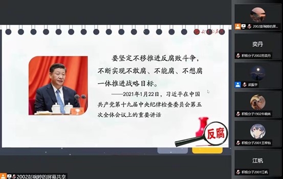 3月25日,best365官网“学雷锋,送温暖”小组员工党支部在腾讯会议开展学习党风廉政建设与《中国共产党组织建设一百年》第十二章主题党日活动。会议由支部副书记武振宇主持,支部全体党员和积极分子参加。员工党员侯朝阳同志担任主讲人。