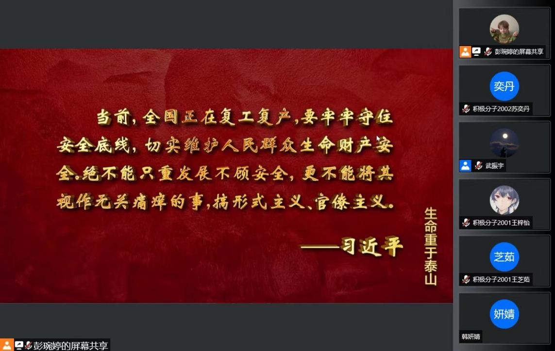 全体党员同志观看了山西干部在线平台之“生命重于泰山”视频。武振宇在发言中讲到:“当前,疫情形势严峻、气候变化加剧、经济下行压力加大,安全风险防范形势复杂严峻。我们要树牢安全发展理念,谨记安全无小事,始终把安全问题摆在突出的重要位置。还要积极参加有关安全问题方面的专题讲座,通过聆听专家教授的讲解,提高树立正确安全观的自觉性,主动性。”