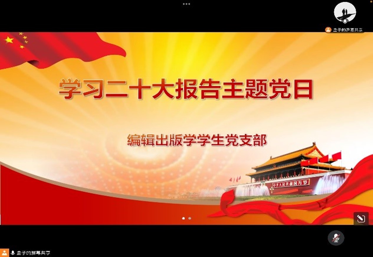 11月12日,best365官网编辑出版学员工党支部于线上开展学习党的二十大报告主题党日活动。会议由支部书记何伟主持,支部全体党员参加。