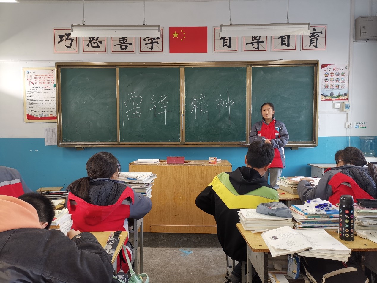 活动过程中,团队成员们向同学们介绍了学习雷锋日的得名和由来、雷锋精神的内涵以及为什么要向雷锋同志学习,并引导同学们讲述自己对于雷锋精神的理解,分享日常生活中的好人好事。同学们积极发言,用平实可亲的话讲述着“与同学一起捡到钥匙并物归原主”、“扶老奶奶过马路”的故事……他们的温暖与正气让团队成员们深受感动。分享结束后,成员们再一次号召同学们在日常生活中要多行好事,多做善事,坚持不懈地弘扬与践行雷锋精神。