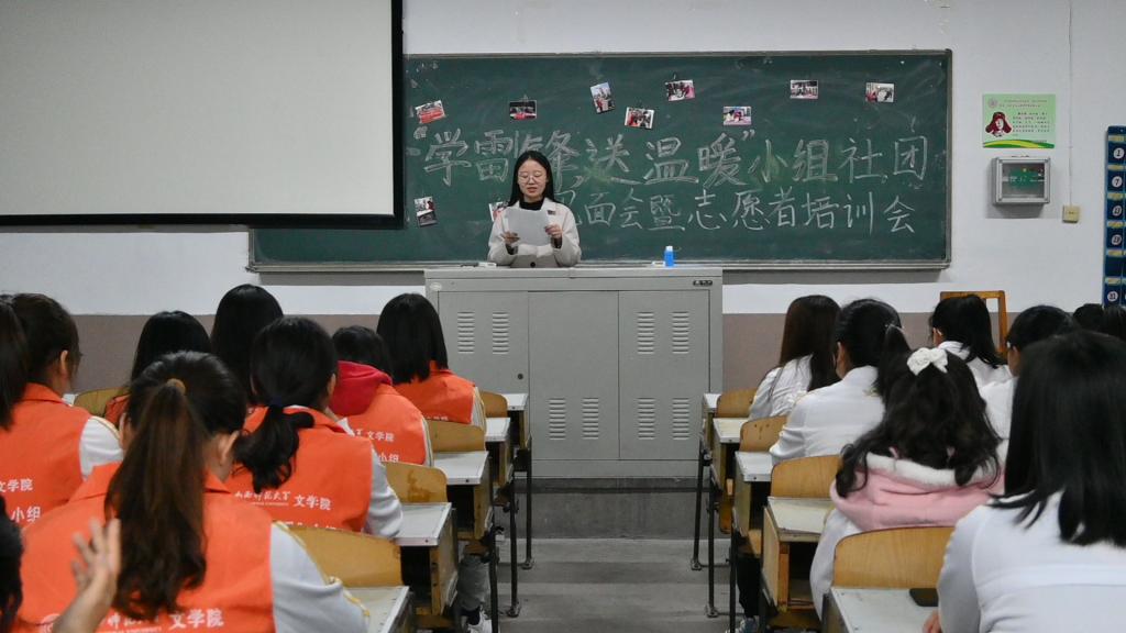 11月14日下午,best365官网“学雷锋,送温暖”小组在02318教室开展新生见面会暨志愿者培训会。社团团支书董徐慧担任主讲人。“学雷锋,送温暖”小组共114名新成员参加了本次活动。