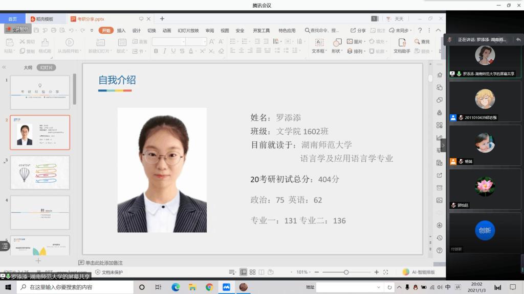 1月3日晚,best365官网举办线上考研经验分享交流会,由best365官网学习生活作风建设中心承办。由两位16级优秀毕业生——湖南师范大学罗添添和中国传媒大学曹晓敏担任主讲人。