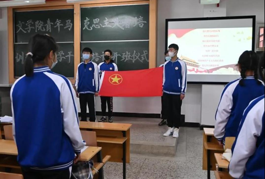 仪式在庄严的国歌声中拉开序幕,王永青宣读了“青年马克思主义培养工程”培训纪律要求,强调作为学员应自觉遵守培训班的各项规章制度,端正学习态度,积极参加培训班组织的学习活动。主持人李丹对青马工程进行了简单介绍,全体学员共同观看《奇迹董事长张桂梅》视频,深刻感受了张桂梅同志不倒精神、忘我精神、自信精神。青马学员代表任艺伟在发言中号召,作为21世纪的青年,要接过历史的接力棒继续砥砺前行,要对历史满怀敬意,对未来充满信心。大家在庄严的团歌中迎团旗,坚定初心使命。