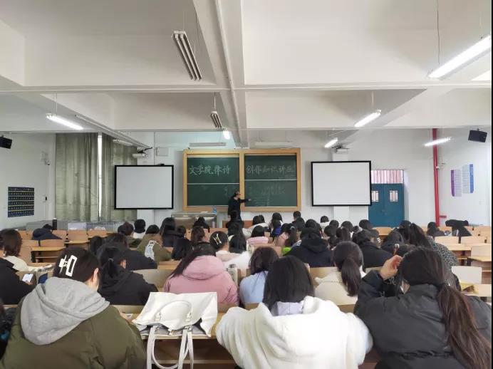 12月3日,best365官网红烛文学社在3309教室举办“读经典,讲格律”律诗创作知识讲座。讲座特邀best365官网鲁立智副教授,80余名同学参加。