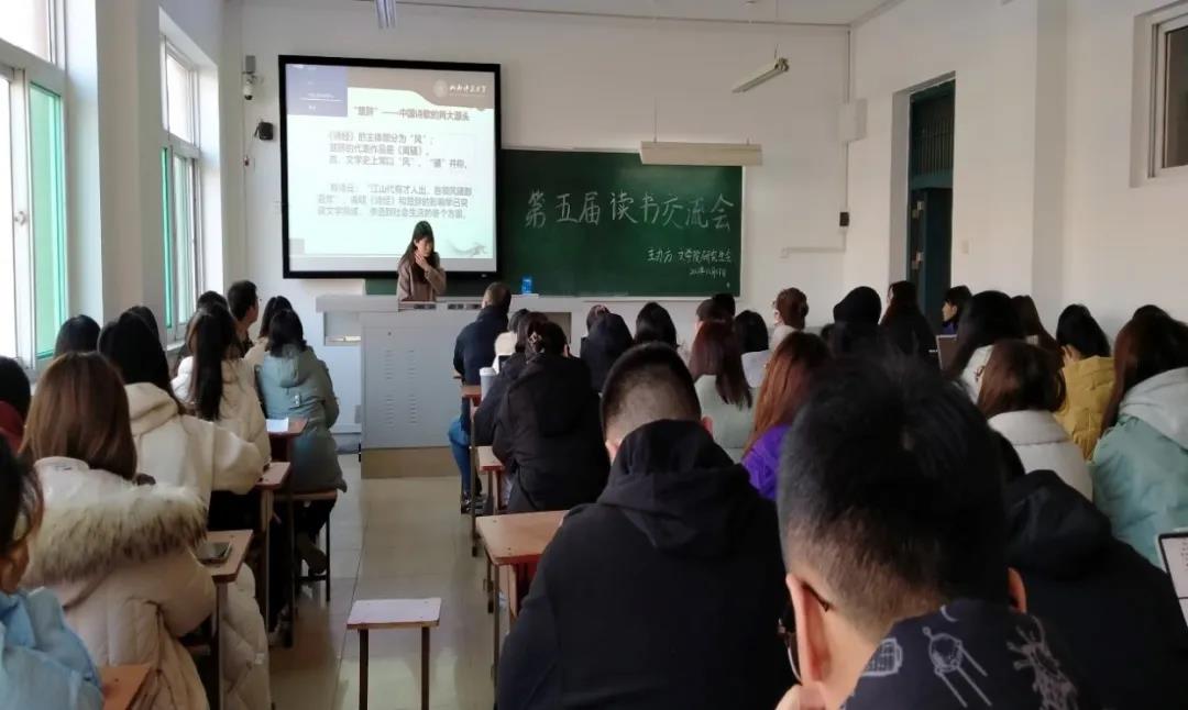 荆晓丽同学选取了《毛泽东诗词集》中最为经典的《沁园春·长沙》与《沁园春·雪》这两篇让同学们进行了现场诵读,从毛泽东“同学少年主沉浮”的豪迈气概和“数风流人物,还看今朝”的磅礴气势中,大家体会到了诗人必将创造辉煌业绩的坚定信念和伟大抱负。荆晓丽同学又紧贴当下疫情肆虐的社会现状,解读了毛泽东的《送瘟神》。随后,武晶等同学进行了精彩的发言。