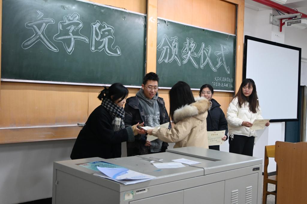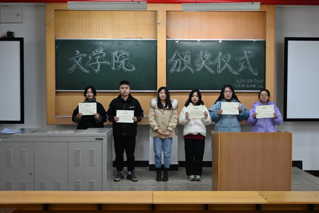 12月27日,best365官网团委员工会学习生活作风建设中心、红烛文学社在南区3107教室举行读书分享会、主题征文大赛颁奖仪式。院专职组织员王永青出席此次颁奖仪式并为获奖同学颁奖。