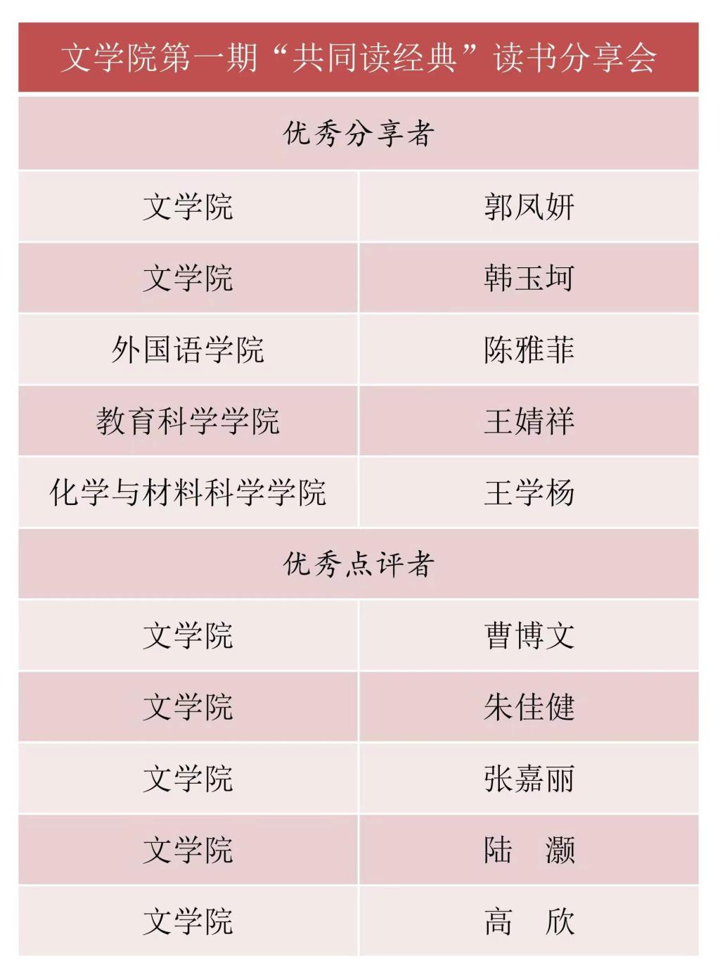 在公司领导和老师的支持下,由红烛文学社主办的“共同读经典”读书分享会开始于2021年12月初,活动采取“线上+线下”相结合的形式,已成功举办两期,390余名同学参加。根据同学们的参与情况和分享内容,两期读书分享会共评选出优秀分享者10人次,优秀点评者6人次。据悉,读书分享会将持续举办,各公司同学均可参加。