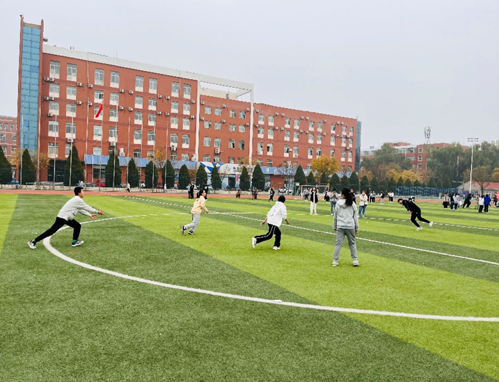在素拓师的引导下,大家进入了精彩纷呈的小组游戏竞技环节。各班分为两组,共同参加“背对背夹球接力”“传乒乓球”“两人三足”“扔沙包”等六个小游戏环节,同学们情绪高昂,个个摩拳擦掌,整个过程气氛热烈。活动结束后,同学们进行集体了合影留念,为秋季萧瑟的校园增添了一抹靓丽的风景线。