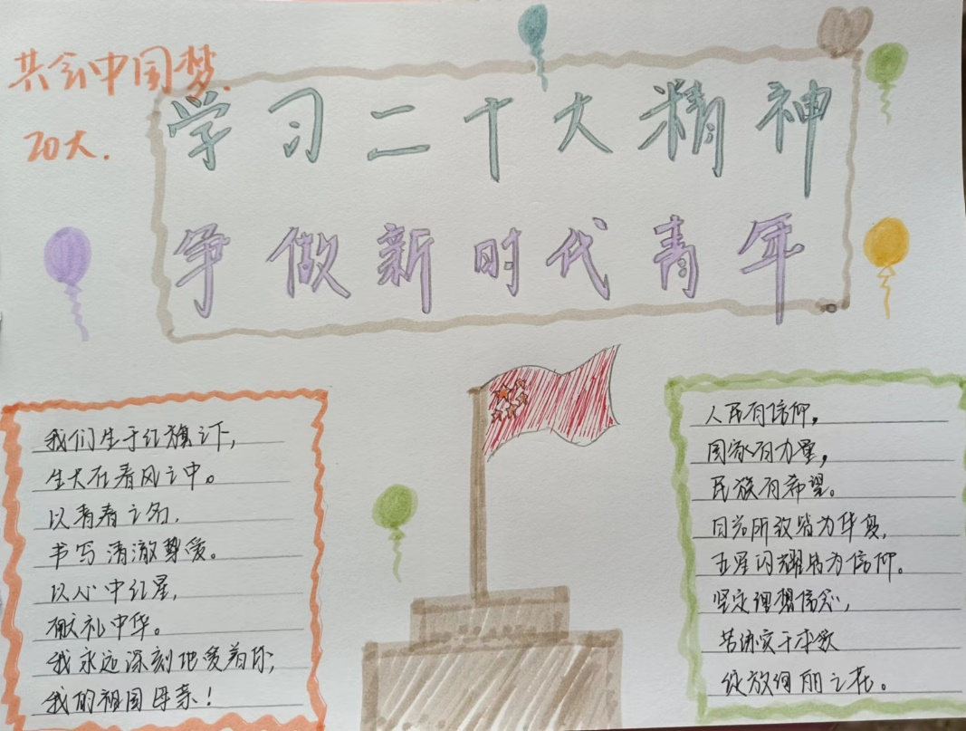 一次次大会的召开,是对我们生活走向更高水平的美好向导,更对我们当代青年提出了更高要求。少年强,则国强。这句话对我们中华儿女来说早已经再熟悉不过了。面对新征程新任务,我们各尽其责,以实际行动担负起实现伟大中国梦的使命,共同擘画美好蓝图。