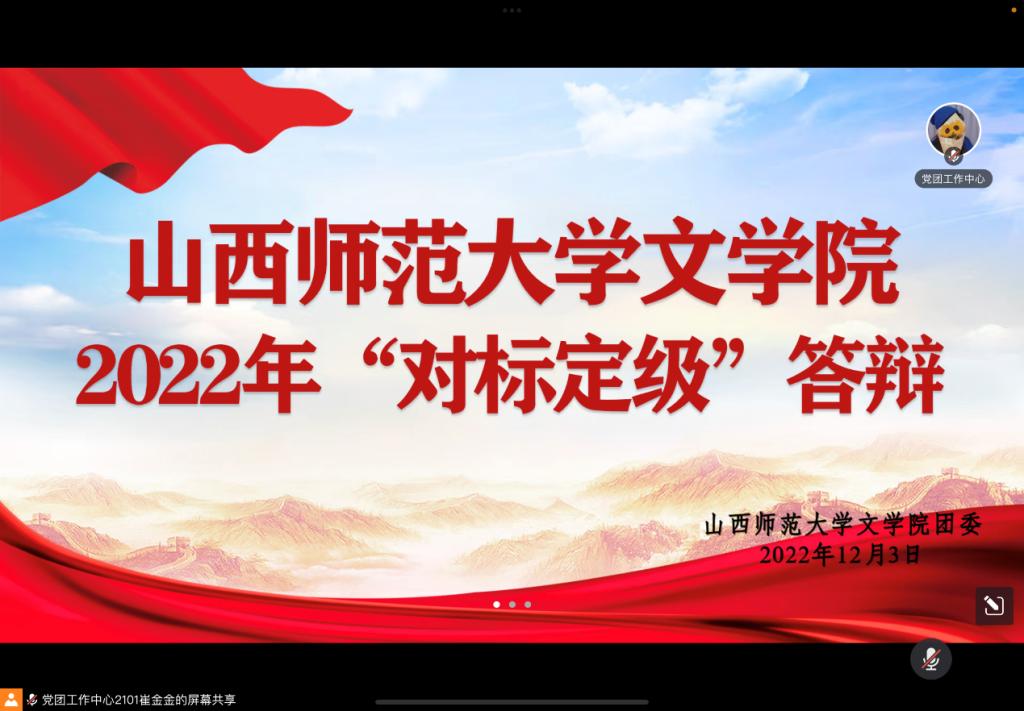 12月3日上午,best365官网于线上召开2022年团支部“对标定级”汇报答辩会。best365官网团委书记樊琳琳担任评委,19—21级各团支部书记参与答辩,71名青马学员到场聆听。