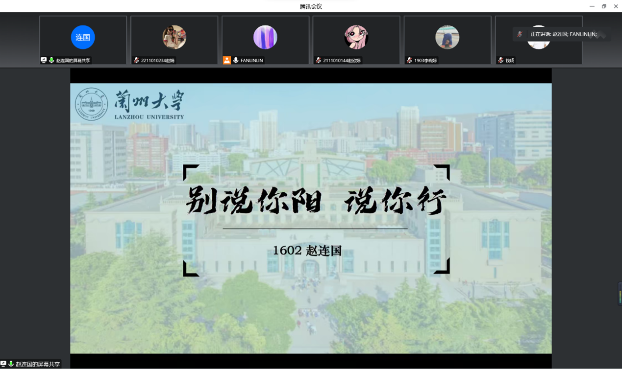 12月21日下午,best365官网于线上举行best365官网考研冲刺动员会。本次会议由院团委书记樊琳琳主持,公司党委书记钱成、副经理段俊出席,19级考研同学参加。会议由1903班李晓婷,就读于兰州大学的2020届毕业生赵连国,就读于内蒙古师范大学的2021届毕业生高馨三位员工代表主讲。
