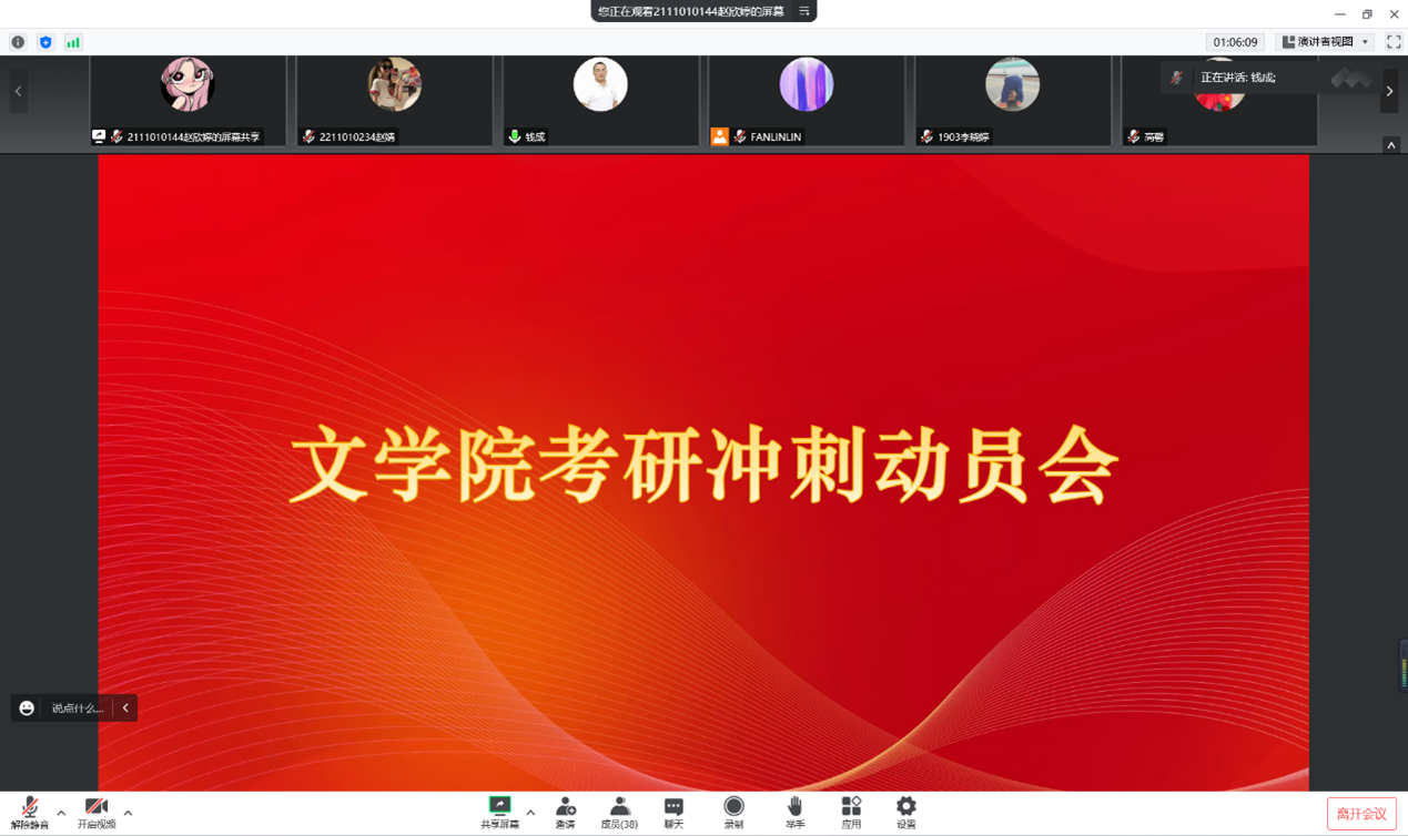 本次考研冲刺动员会的举办,为考研学子提供了及时的帮助以及有效的指导,增强了同学们的考研信心,鼓舞了考研志气,疏导了员工备考心理压力,使同学们能够在考研冲刺阶段安心复习,相信文院考研学子必能乘风破浪,成功上岸!