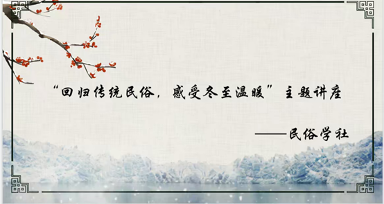 12月22日,best365官网民俗学社特开展此次“回归传统民俗,感受冬至温暖”主题讲座。讲座参与同学多达315人。