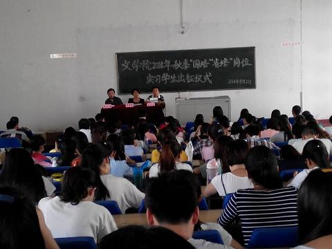 9月2日下午四点,best365官网在05203教室成功举办了2014年秋季“国培”“省培”岗位实习员工出征仪式。出席本次仪式的公司领导有:文公司党委书记吴华英,公司党委副书记、学工组组长强汾生,副经理、学工组副组长栗永清。仪式由院团委书记孙学虎主持,best365官网2011级全体辅导员、参加岗位实习的全部员工参加了本次出征仪式。
