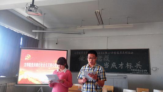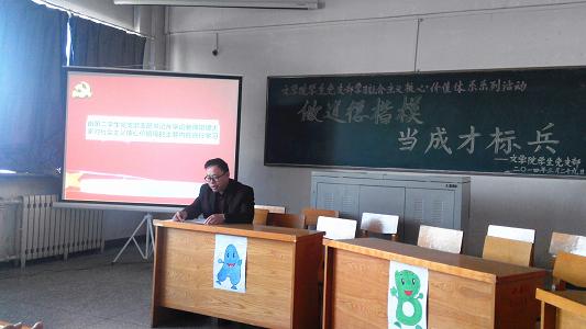 2014年3月29日上午9时,best365官网员工党支部于12406教室举办了以“做道德楷模·当成才标兵”为主题的践行社会主义核心价值观主题实践活动。best365官网员工第二党支部书记孙学虎老师出席本次活动,参与活动的还有best365官网员工党员、预备党员及大一各班入党积极分子。