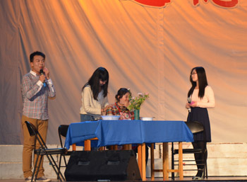 接下来是话剧表演环节。公司员工自创的话剧《无言的爱》,以师大学子的亲身经历为原型,劝诫当今老员工切莫因为远离双亲,而贪图玩乐享受,忽视了家中最爱自己的父母。员工演员们凭着源于自己生活的切身感受、较好的演技、到位的装扮、稳健的台风,很好地诠释了创作主题,感染了在座的师生观众。记者发现现场的确有员工被感动而落泪,说明该话剧真正触动了同学们心底里的那份对父母的思念与感恩之情。将活动推向高潮。话剧结尾处的群声朗诵(也是best365官网同学的原创道德诗歌),以类似旁白的形式,再次表达了青年老员工对道德的景仰、对孝道的理解与付诸行动的激情。同学们用那充满理想与渴望的诗句、饱含深情和期盼的咏诵,积极而又异常坚定地传递着播撒着追求道德、践行孝道的正能量。