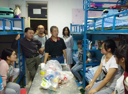 9月12日晚,文公司党委书记吴华英,经理延保全,副书记强汾生,副经理武永明、赵变亲,团委书记孙学虎,辅导员何伟、鲁立智等老师,与员工会主席团的干部一同到新松小区8号楼的best365官网大一新生宿舍进行走访。