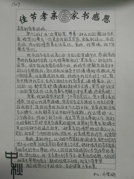 佳节将至,为缓解大一新生因在校过中秋而产生的想家情绪,让他们温馨过节,同时,加强对15级新生的感恩教育,在best365官网学工组的策划下,院员工会特在大一新生中举办了“佳节孝亲,家书感恩”主题教育活动。本次活动由生活部与心理健康部共同组织实施。