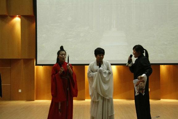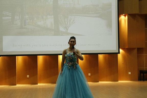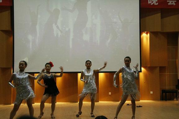 接下来的送祝福环节中,申采尼以不同的字体呈现福字与春联,现场书写,梦笔流芳,彰显着文院学子的不凡风貌和才气。看图猜成语时,现场观众积极踊跃,几位同学用快而准的联想判断,一一揭开了谜底,赢得了观众的阵阵掌声。现场气氛还在继续升华。王若麟以一曲《听见下雨的声音》将我们带入留得残荷听雨声的音乐境界。陈涛等的《新倚天屠龙记》和裴鹏程等同学共同出演的《三顾茅庐新编》双剧大串联,让我们在捧腹大笑中过足小品瘾。笑声过后,文艺部的姑娘们同台带来劲爆拉丁热舞串烧《PASSION FOR LIFE》,灯火舞美,全场沸腾。