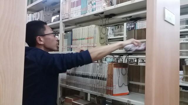 此次活动的主要清扫地点是公司图书馆一层和二层的文科借书还书处,包括书架上书的整齐摆放、整洁书架和清洁地面。上午8点半,参加活动的全体成员在图书馆门前集合后,便开始了如火如荼的清扫工作。全体成员分为两组,每组负责一层,各组内又进行了更细致的分工,每名同学负责一整排书架,先整理书架上的书,再擦洗书架。在整理书架的过程中,志愿者们感受到了公司藏书的丰富,同时,在与图书馆老师们的沟通交流中,同学们也对图书的分类管理、摆放的位置、服务功能等有了更为详细的了解。两个多小时后,清扫活动圆满完成,看着整齐干净的书架,他们写满疲惫的脸上终于出现了开心的笑容。