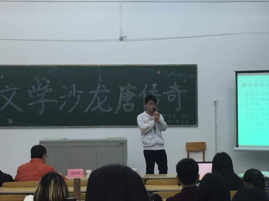 活动伊始,1502班的聂迪雅同学朗诵唐传奇选段,一身正装的她气质干练,在标准的发音和抑扬顿挫的诵读声中,同学们领略了唐传奇的博大精深。接下来,1501班班长卫程虎带来唐传奇鉴赏,他底气十足,语言浑厚,加上制作精良的多媒体课件,给大家带来了一场绝美的视听盛宴。更值得一提的是,活动中间的学术互动环节激起了同学们的浓厚兴趣,大家争相参与,相互交流了各自的学习体会,成为了本次活动的一个亮点。