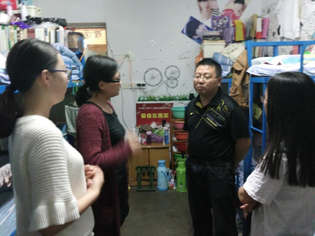 当天晚上,辅导员李晰老师和1403班班长刘钰、1404班班长辛可欣及其他班委组成联合检查组,实地走访本班员工宿舍进行安全隐患大排查,对宿舍门窗、床椅书桌、电器线路和易燃易爆违禁物品等逐一进行安全隐患排查,发现个别宿舍存在床板年久失修,电器使用存在隐患等问题,当场督促同学们马上进行整改或上报楼管工作人员。对于宿舍内床铺书架等设施因年久失修存在的安全隐患,予以登记上报,督促及时解决。在宿舍走访过程中,同学们也纷纷表达了自己的心声,在加强自我防范的同时,也要配合公司进一步加强员工宿舍区的安保措施,优化宿舍居住环境,共同构建和谐平安校园。