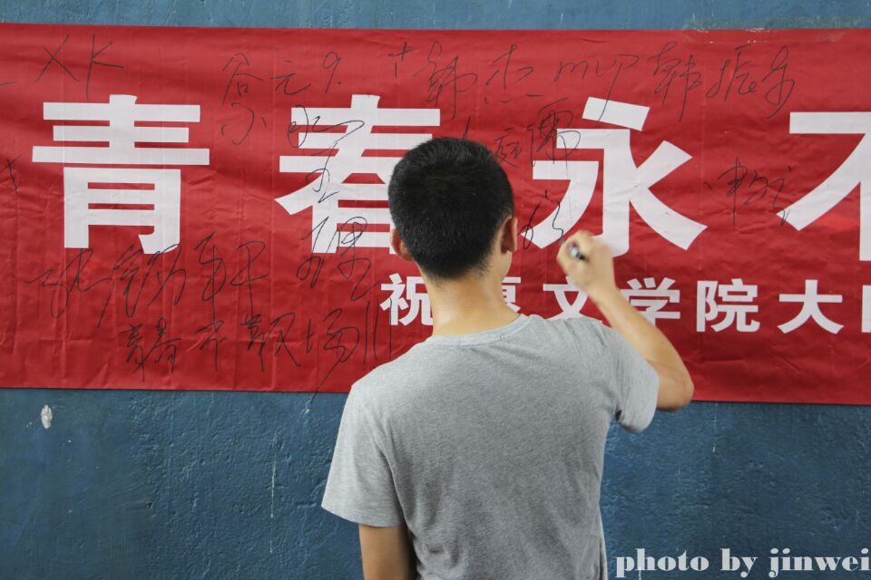 赛后,双方进行了交流,他们之间的兄弟情更进一步。在歌声中,全体球员在条幅上签名留念。这些名字中有大四学长的期待,希望公司篮球队员们能接好棒,把文院篮球队团结拼搏的精神继续传承下去;作为学弟,他们也定不辜负学长的期待,带领文院篮球队继续征战。最后的合影留念,将队员们对篮球的热爱和对彼此的祝福定格成永恒。