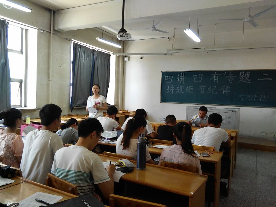 6月22日上午,按照文公司党委“两学一做”学习教育安排部署,员工第一党支部和员工第二党支部在教学楼12205、12208教室分别召开了“四讲四有”专题二学习讨论会,两个党支部的所有正式党员以及预备党员参加了教育学习活动。一支部组织委员李奎老师,二支部组织委员何伟老师和宣传委员薛月兵老师出席了会议。