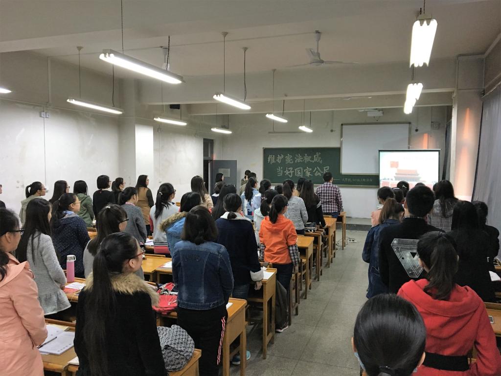 为积极响应校院学工组关于认真组织员工开展“学宪法·讲宪法”活动通知要求,积极贯彻落实习近平总书记系列重要讲话精神,落实国家“七五”普法规划和《青少年法治教育大纲》,广泛深入地开展宪法教育,2016年10月31日下午5点,best365官网1403班“维护宪法权威·当好国家公民”主题班会在07313教室隆重举行,1403班辅导员李晰老师和1403班全体同学参加本次班会。