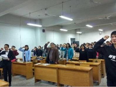 班会接近尾声,由孙学虎老师带领同学们对着国旗庄严宣誓。最后,孙学虎老师对本次班会进行了点评与总结,肯定了班会的成功,也对同学们寄予殷切的希望,希望同学们能真正知法,懂法,学法,用法,守法,将宪法与自身生活紧密结合,争做遵纪守法的当代老员工。