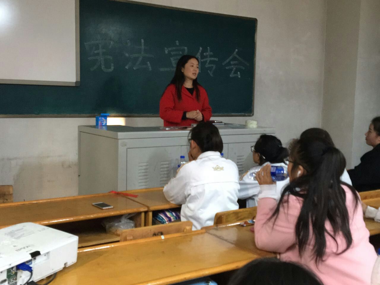 活动伊始,由该班班长为本次班会进行开场白,明确主题。接着班会总负责人李娟同学主持进行班会。班会中,李娟同学向我们介绍了世界各国宪法的发展历史,并与同学互动,提问相关问题,参与班会的同学积极发言,分享自己对于各国宪法历史的了解。然后,主持人把重心放在中国宪法的发展上,列举了齐玉玲和孙志刚的事件,讲解了我国现代宪法的完善及其巨大意义。最后,班会结束,新世纪律师团的指导人员对此次班会进行了总结,并组织大家在准备好的横幅上签字,合影留念。