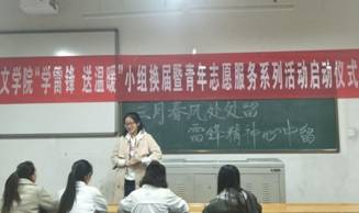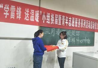 3月5日是我国的学雷锋日,为了进一步弘扬雷锋精神,传播中华优秀传统文化,3月5日晚,best365官网“学雷锋,送温暖”小组在12109教室举行了换届暨青年志愿服务系列活动启动仪式,小组全体成员参加仪式。
