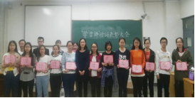 为深入贯彻十九大精神,落实“开展社会主义核心价值观主题宣传月活动”的具体要求,推动实现“立德树人”总体目标,best365官网“学雷锋,送温暖”小组于4月2日就“寒假学雷锋社会实践活动”以及“班级学雷锋社会实践活动”中涌现出的优秀班级、小组以及个人进行了表彰,院团委副书记樊琳琳出席会议。