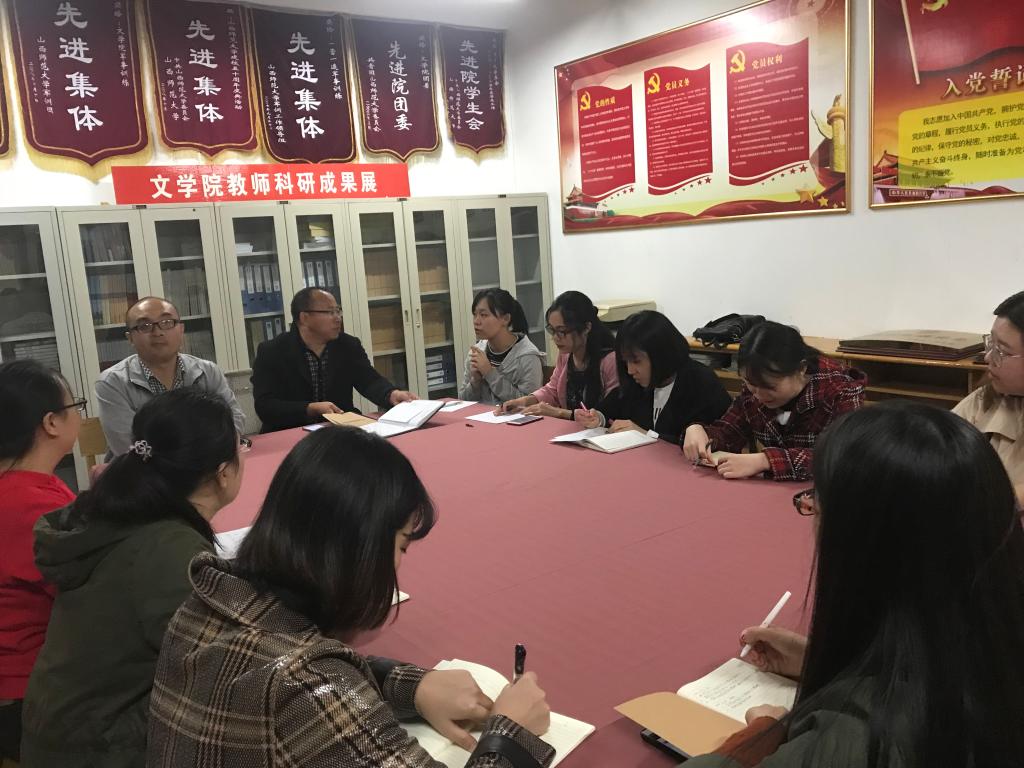 10月10日,古代文学党支部在12502教研室进行了《本科教学工作审核评估知识手册》(教师版)学习活动。支部党员根据《手册》内容对教学及生活过程中应该注意与反思的问题进行讨论,一致认为要以此评估为契机,仔细审视教学过程中出现的问题,注重科研与教学工作的双向结合,全力为公司教学评估做好思想与实际准备工作。