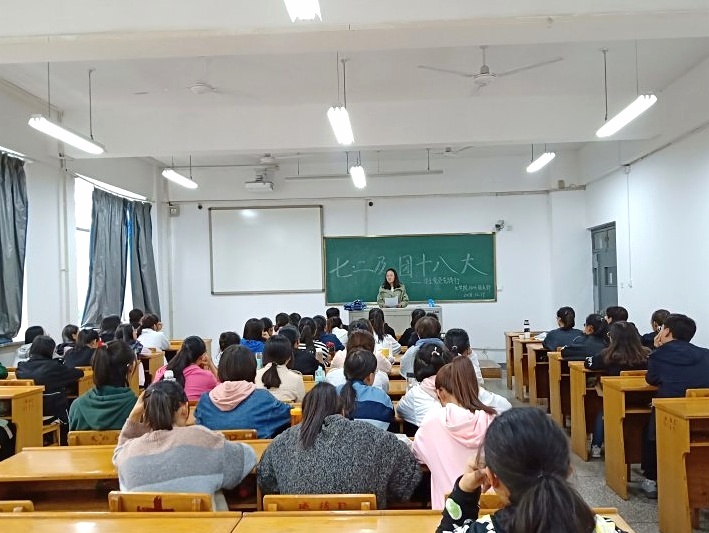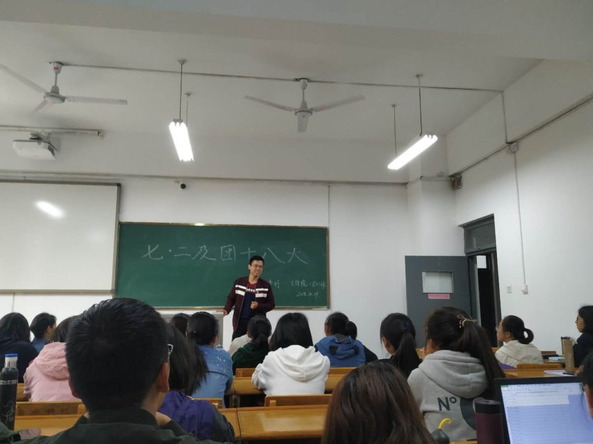 10月18日下午,编辑出版学及汉语国际教育员工党支部唐姝菲带领1806班团支部于12108教室学习了讲话精神。她说到,习近平总书记的重要讲话充分肯定了五年来共青团工作取得的成绩,深刻阐明了党中央关于青年工作的基本要求,新生团员应该明确新时代共青团的职责使命,坚定理想信念,践行人生规划,不负习近平总书记的嘱托和厚望。
