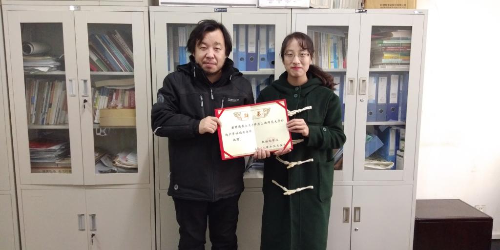 12月5日,红烛文学社聘请best365官网副经理、硕士生导师栗永清老师担任社团指导教师,社长武慧瑾代表社团向栗永清老师颁发聘书。
