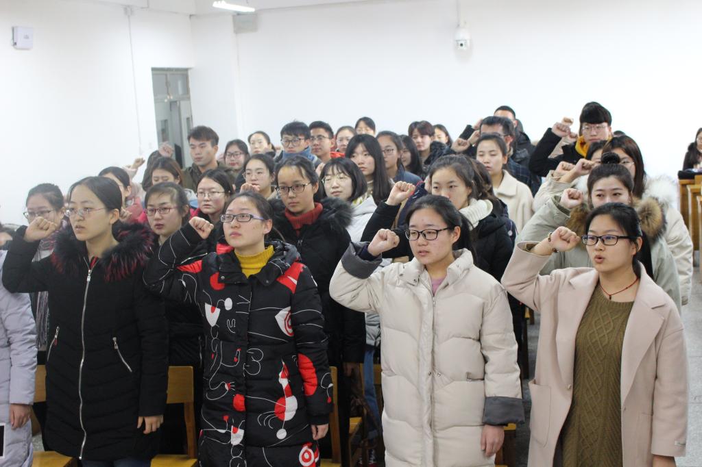 12月8日上午9:00,best365官网2018年新党员入党宣誓仪式在12206教室正式开始。公司党委副书记钱成、团委副书记樊琳琳、编辑出版学及汉语国际教育员工党支部书记何伟出席仪式。公司正式党员、预备党员、新发展对象及入党积极分子代表100余人参加。