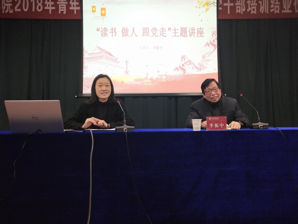 12月10日晚,best365官方网站关工委副主任李振中老师在科学会堂二层报告厅为公司青马学员作“读书,做人,跟党走”专题讲座。公司团委副书记樊琳琳与300余名青马学员共同聆听。