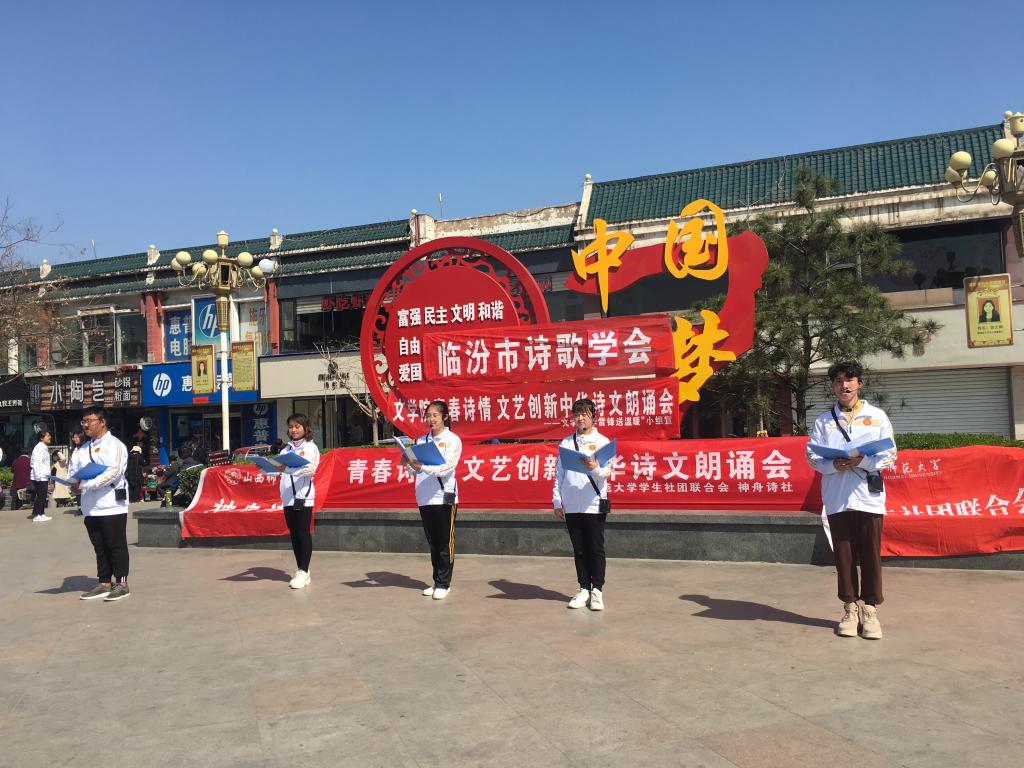 据悉,临汾市诗歌学会常务副主席孙忠晓、神舟诗社指导老师王涛、best365官网教师代表侯昕昊出席现场并指导员工朗诵,吸引了附近行人、公司员工200余人驻足聆听。活动由best365官网“学雷锋,送温暖”小组联合临汾市诗歌学会、校社联、院员工会文艺部共同举办,是小组传承经典文化系列活动之一,响应了省委及公司关于积极开展“改革创新、奋发有为”大讨论的号召,展现了师大学子作为新青年昂扬向上的精神风貌。