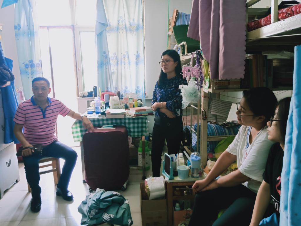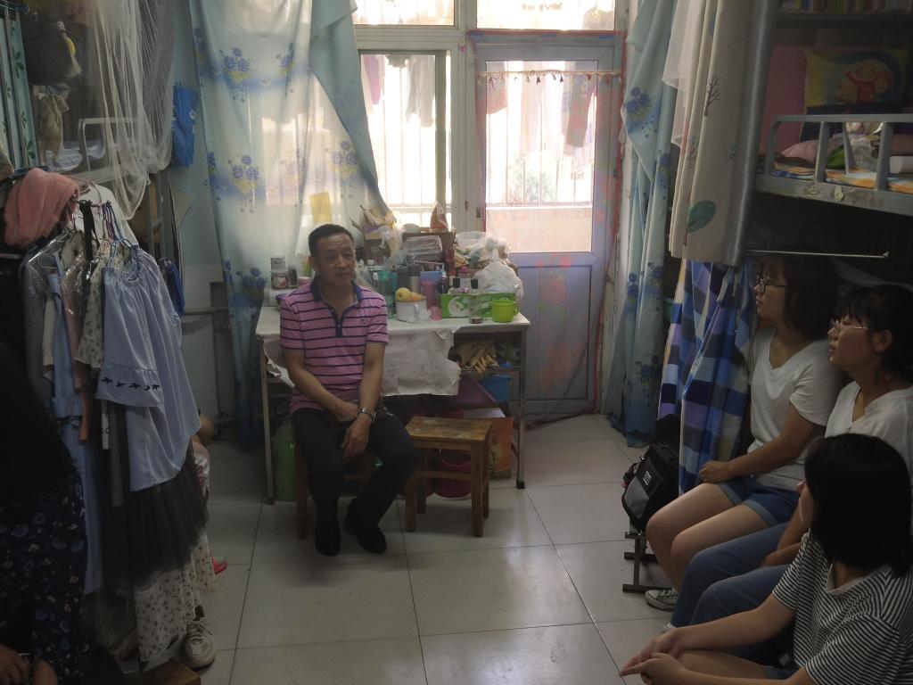 9月3日中午,文公司党委书记强汾生、党委副书记钱成、团委副书记樊琳琳以及专职辅导员侯昕昊、史晓敏一行对员工宿舍进行了走访。