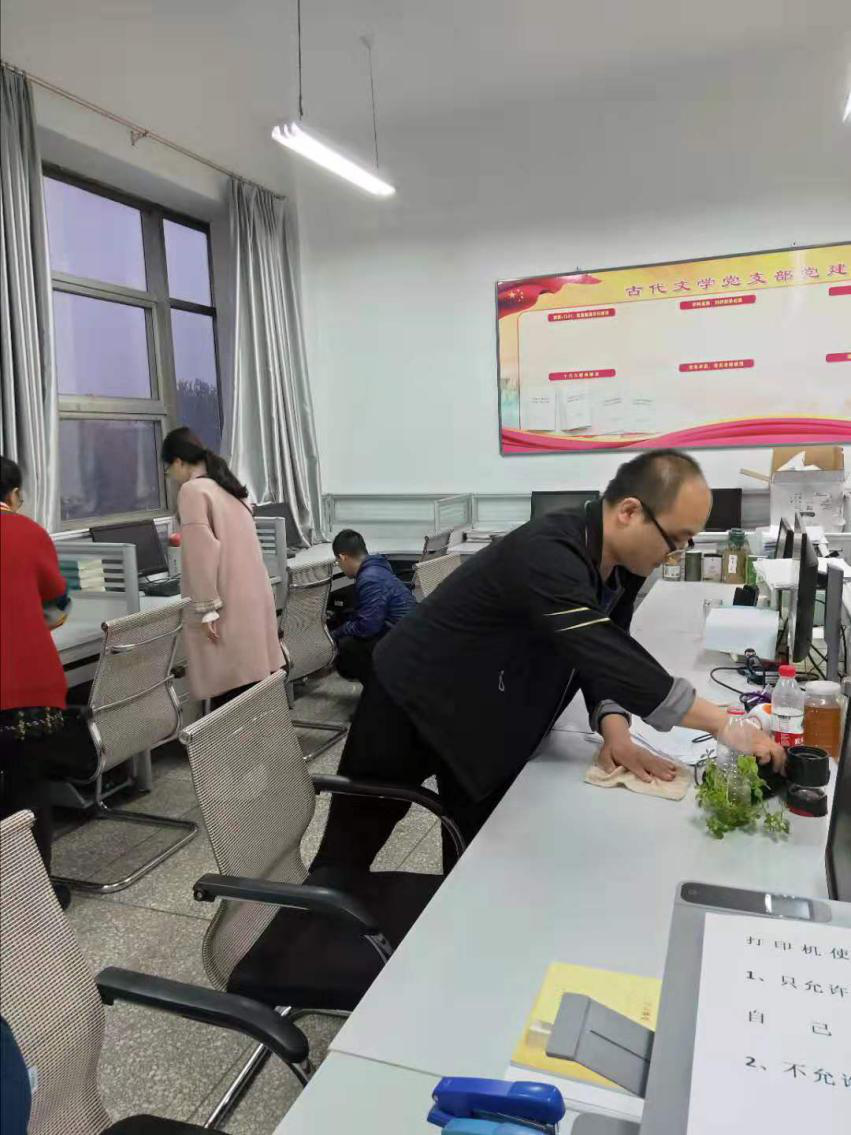 为切实发挥共产党员的旗帜作用,增强党员为人民服务的宗旨意识,营造争做先进党员的积极氛围,11月8日下午,best365官网文学及写作学研究生党支部在best365官网教学楼组织党员义务打扫图书资料室的活动,支部班子成员与党员共同参加了此次志愿服务活动。