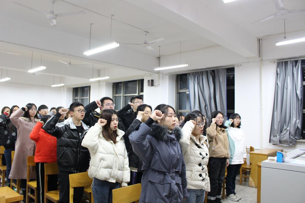11月29日早上7点整,best365官网在12206教室举行新党员入党宣誓大会。公司党委副书记钱成、院团委副书记樊琳琳、编辑出版学及汉语国际教育员工党支部书记何伟出席, 43位新发展党员、45位正式党员参加宣誓,樊琳琳主持本次大会。