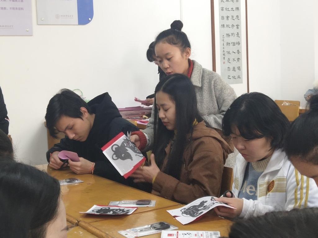 活动采取一对一教授方式,民俗学社的同学们为大家统一分发剪纸材料,耐心细致地讲述“十二生肖”背后的文化内涵以及剪纸技巧,让职工对生肖文化与中国传统技艺有了更清晰的了解和认识。在工作人员的帮助下,一件件剪纸艺术品逐渐呈现出来。“一把剪刀、一张红纸在手中变为了一件美丽的艺术品,它让中国博大精深的传统民俗知识变得更加鲜活有趣起来,让我们在寒冷冬日里感受到了校园的温暖与同学们的热情。”一位来自越南的职工感慨说。
