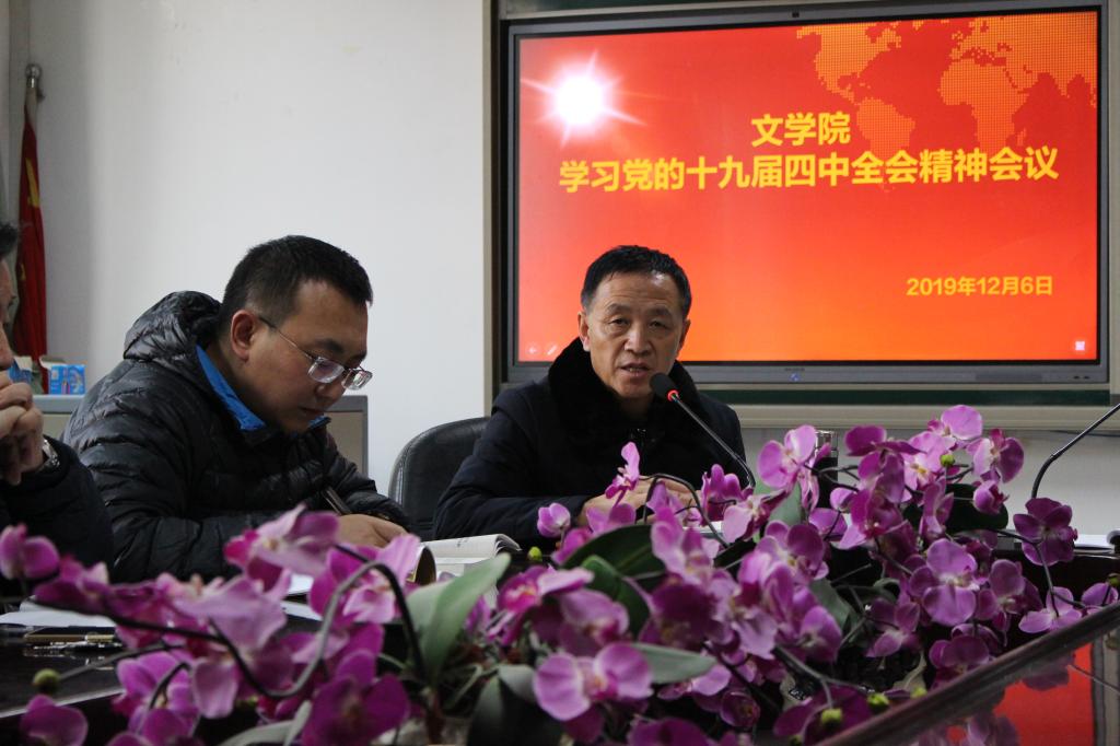 12月6日,文公司党委组织中心组成员在公司会议室召开会议集体进行党的十九届四中全会决定第一专题学习。公司党委书记强汾生担任本次会议主讲人。