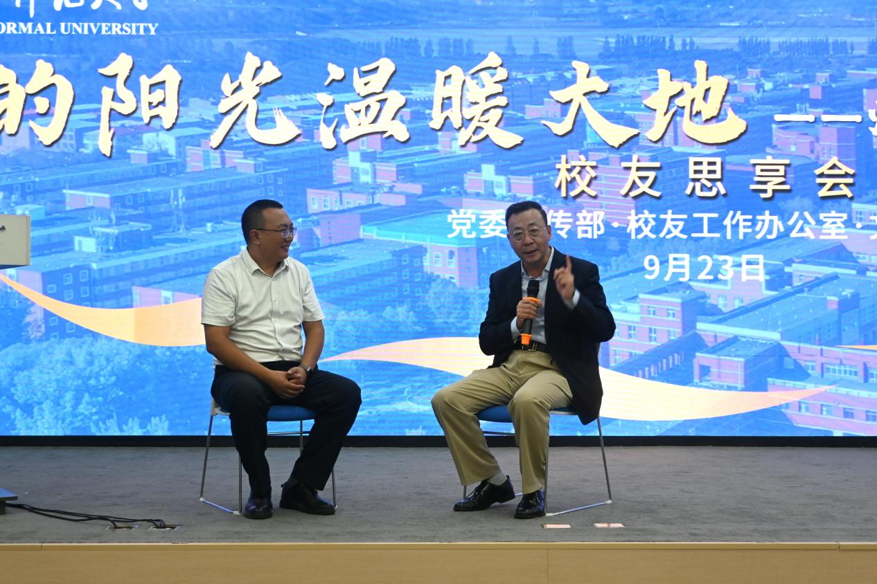 孙金岭结合自身学习工作经历,向同学们介绍了自己数十年来的感悟和收获。他向同学们讲述了四十多年前师大条件的艰苦,自己与“学雷锋,送温暖”小组的故事及小组精神对自己工作生活的影响。孙金岭还谈到自己在中央电视台的工作经历,从最初的默默无闻到最后的正式入职,以及与白岩松、敬一丹等名人名士交流的故事。他指出,我们要坚持积累、保持善良,做一个纯粹的人,做一个对得起自己、对得起母校的人。